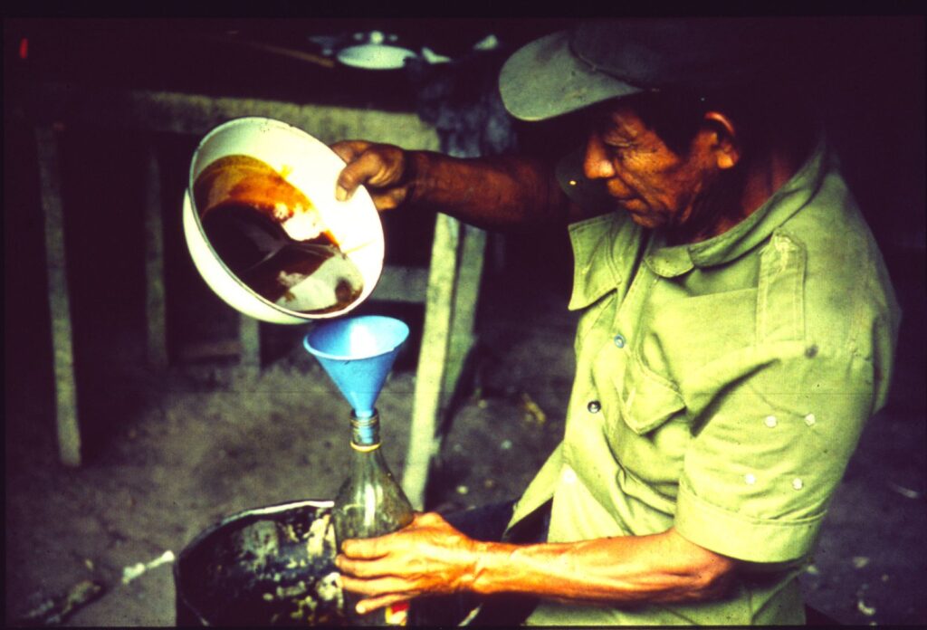 No final dessa viagem, cheguei novamente a Florencia, já sem dinheiro. Mas queria reencontrar Apolinar, um curandeiro que eu havia conhecido anos antes. Em 1971, quando conversei com ele, eu disse que tinha interesse em pesquisar o yagé. E ele respondeu: “Se você quer aprender essas coisas, tem que ficar comigo 40 dias e tomar yagé 40 noites. Aí aparece o yagé.” Eu perguntei: “E o que é esse yagé?” E ele respondeu: “É um homenzinho pequeno, simpático.”